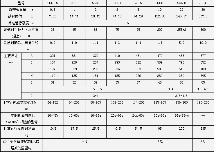 手鏈單軌小車(chē)GCL型0.5T-30T介紹: