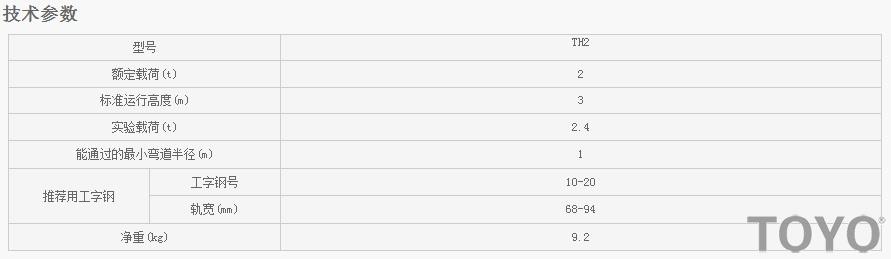 日本東洋TOYO TH電動小車技術(shù)參數(shù):