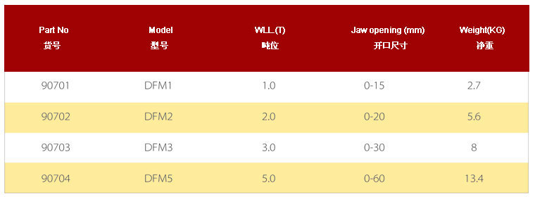DFM系列模鍛翻轉(zhuǎn)起重鉗 額定載荷:1-5T