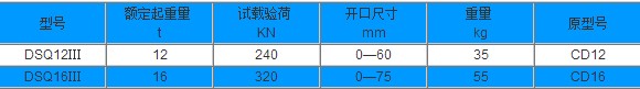 上海船廠DSQ型鋼板起重鉗技術參數: