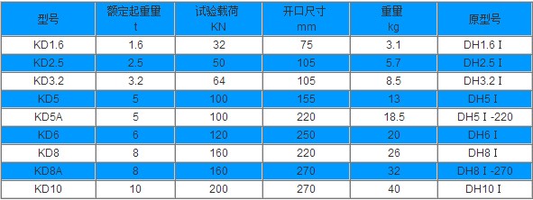 上海船廠KD型鋼板起重鉗技術(shù)參數(shù):