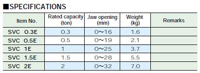日本世霸SVC立吊夾具技術(shù)參數(shù):