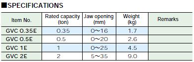 日本世霸自在形GVC吊夾具技術參數(shù):