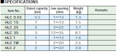 日本世霸HLC型鋼吊夾具技術(shù)參數(shù):