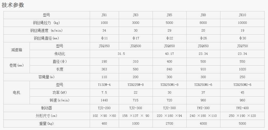 浙江凱勛JK1-JK10建筑卷?yè)P(yáng)機(jī)技術(shù)參數(shù):