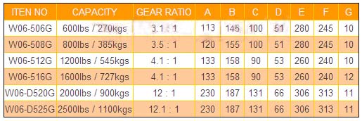 臺灣至光附剎車手搖絞盤技術(shù)參數(shù):