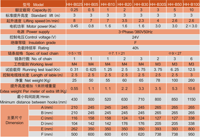 HH-B型三相單速環(huán)鏈電動葫蘆具有起升速度快、外形美觀、操作安全可靠等特點,尤其具有獨特的超載安全保護(hù)裝置和電機(jī)熱保護(hù)裝置,使本產(chǎn)品在使用中的安全可靠性達(dá)以最高。本產(chǎn)品可廣泛應(yīng)用于各種輕小型重物吊裝;亦可同架空行車或懸臂吊配套,組成適宜于低空間作業(yè)的物流運輸系統(tǒng),是一種改善勞動條件、提高勞動效率的最佳設(shè)備之一,可選配無線遙控器。