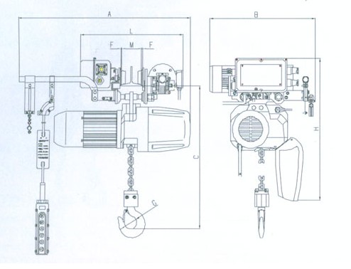 6、可以安裝在懸空工字鋼、曲線軌道、旋臂吊導(dǎo)軌及固定吊點(diǎn)上吊運(yùn)重物。