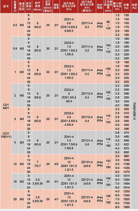 CD.MD 型鋼絲繩電動葫蘆各部分的介紹: