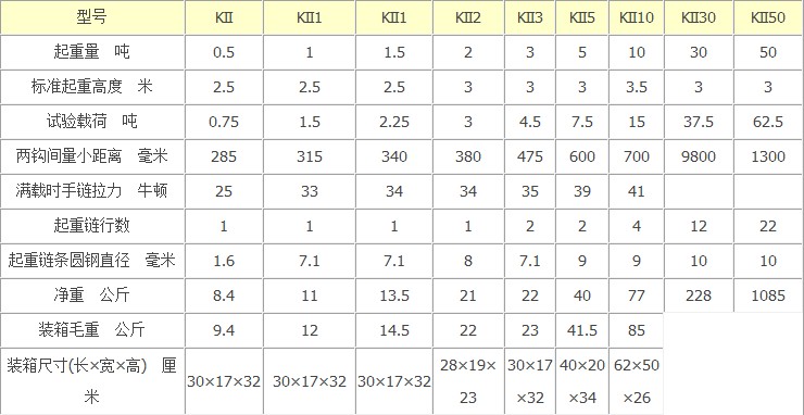 KII型手拉葫蘆緊湊型設(shè)計,外形美觀,體積小,全鋼結(jié)構(gòu)耐磨損、抗腐蝕的高強(qiáng)度鏈條及吊鉤符合歐洲安全標(biāo)準(zhǔn),此外KII型手拉葫蘆使用安全可靠,整機(jī)強(qiáng)度優(yōu);傳動效率高,手拉輕巧,手拉鏈?zhǔn)指泻?,大大減輕操作者的勞動強(qiáng)度。