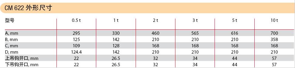 美國科美CM622型手拉環(huán)鏈葫蘆技術(shù)參數(shù):