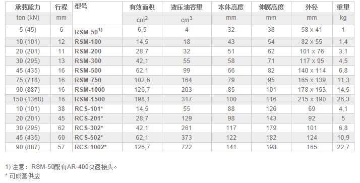 美國恩派克RSM RCS-系列單作用薄型液壓油缸技術(shù)參數(shù):