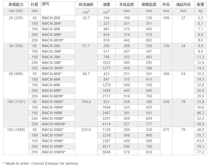 美國(guó)恩派克RACH-系列雙作用鋁制油缸技術(shù)參數(shù):