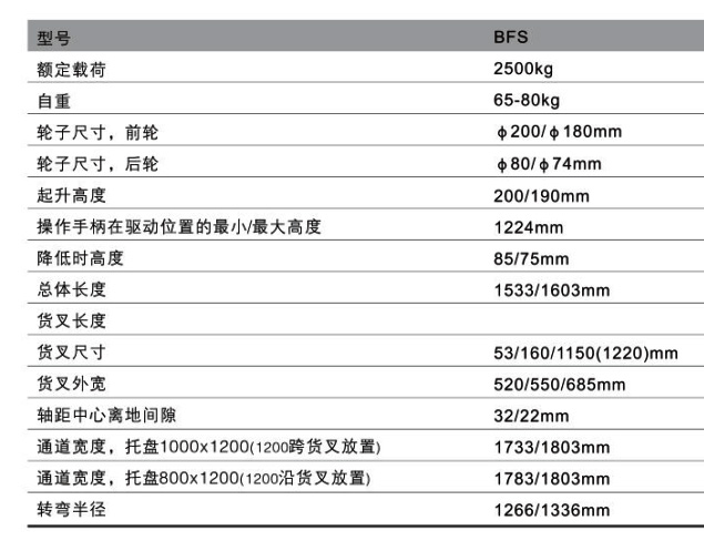 浙江西林BFS平板搬運車技術(shù)參數(shù):