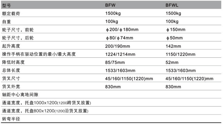 浙江西林BFWBFWL型平板搬運(yùn)車技術(shù)參數(shù):