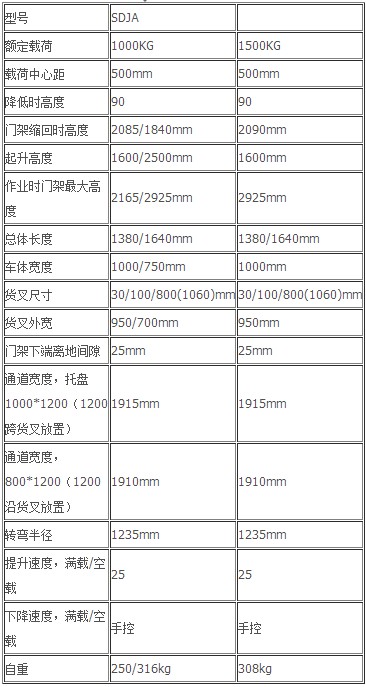 浙江西林SDJA1000/SDJA1500叉車技術參數(shù):