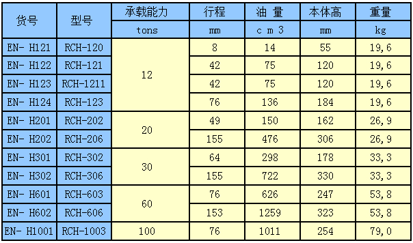 恩派克RCH空心柱塞千斤頂參數(shù):